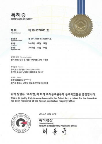 소비자가 선택한 자동문의 국가대표업계유일 올해의 제품 중소벤처기업부 장관상 수상