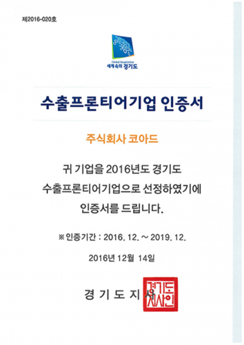 - 수출프론티어기업 인증서